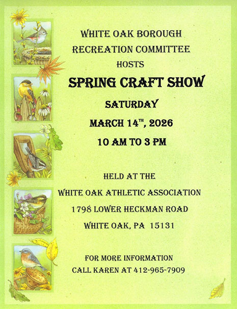 The Borough of White Oak hereby gives notice of the 2025 Meeting schedule. All meetings will be held at the White Oak Borough Municipal Building, 2280 Lincoln Way, White Oak, PA 15131. All meetings are open to the public except for Executive Sessions.